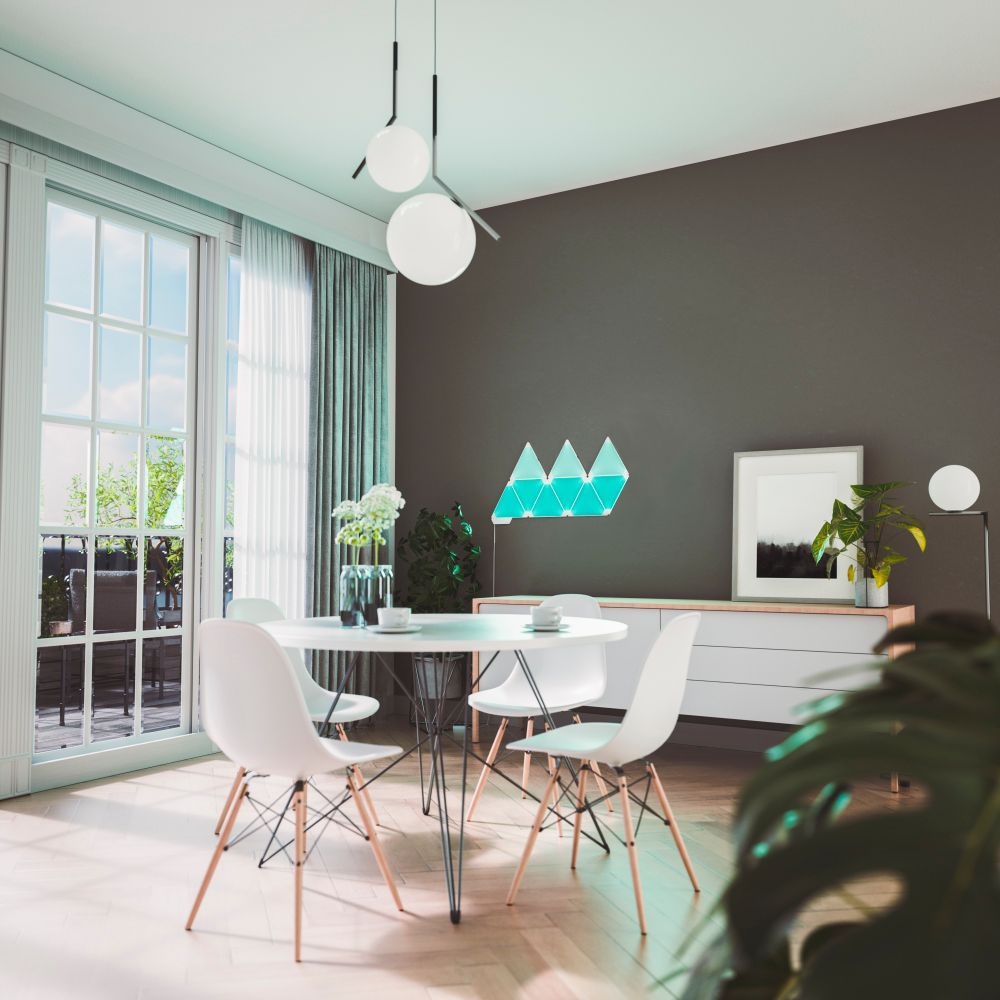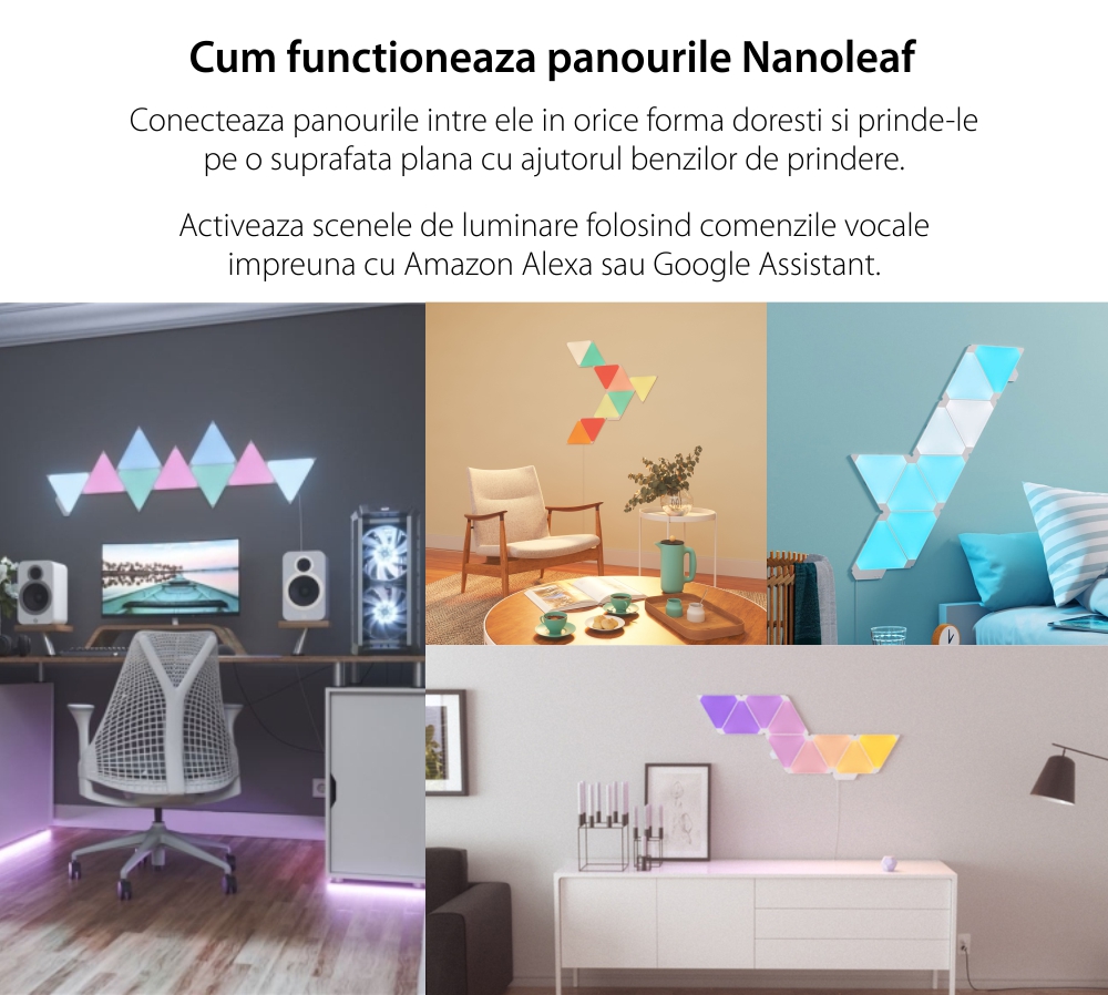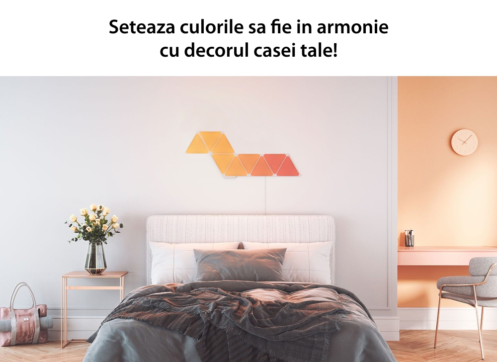 Kit 9 Panouri luminoase Nanoleaf Shapes Triangles, Iluminare LED RGBW, Senzor muzica, Flux luminos total 720 lumeni SmartElectro IntelligentHouse