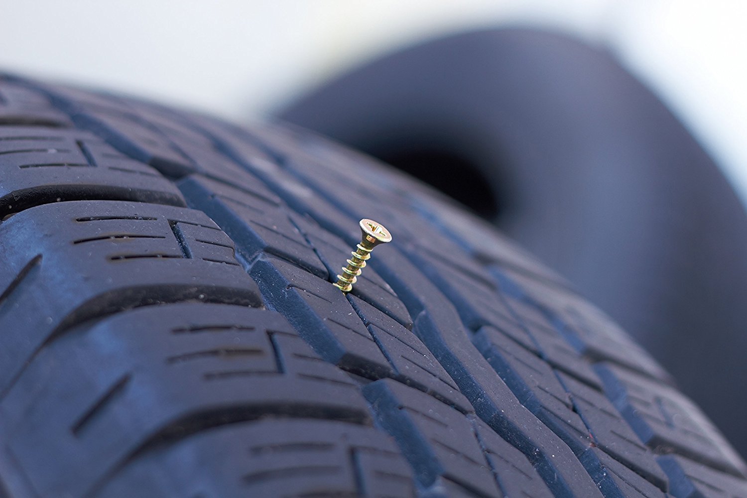 In cazul unei pene aerul care iese prin gaura creata angreneaza cu el solutia verde care astupa gaura.
