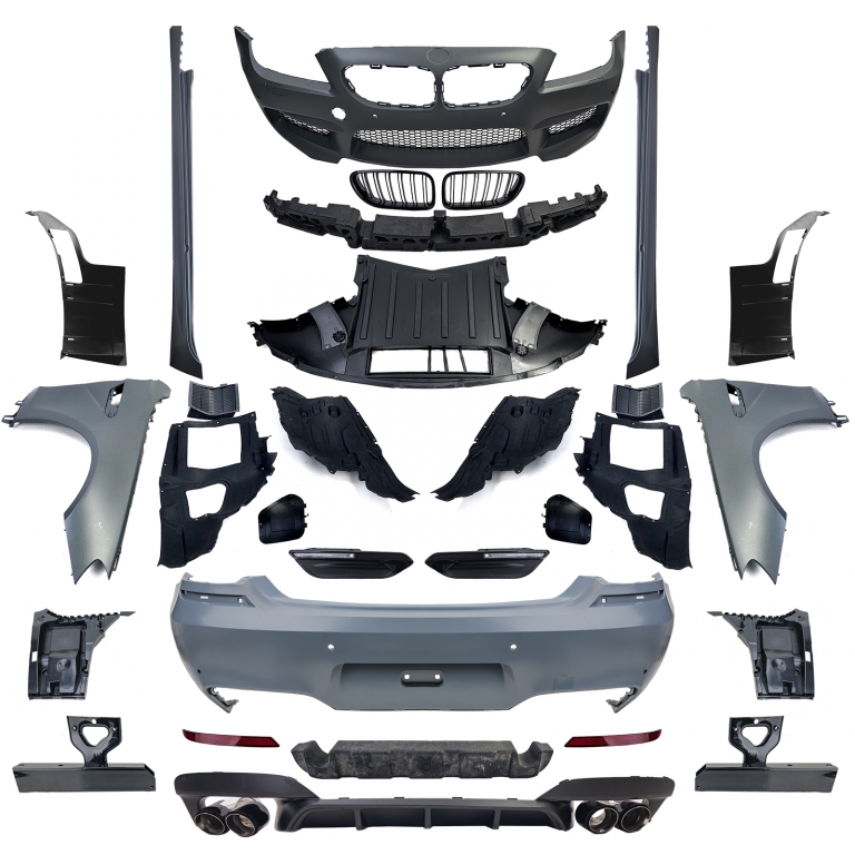 Kit de caroserie complet în aspect sportinclude următoarele piese:bumpere față și spategrile de bumperaripi dreapta și stângadifuzor spate sport cu țevi de eșapament corespunzătoaregrilă radiator sportși diverse capace, așa cum este prezentat- Îmbunătățește absolut aspectul în aspectul sport dorit- Calitate foarte bună- Materialul este plastic ABS de înaltă calitate- Nou și necoloratBMW 640i / 640d Gran CoupeTip F06An 2011-2018Acest kit de caroserie poate fi utilizat și pentru F12 și F13, cu condiția ca pragurile laterale să fie omise, deoarece acestea sunt mai lungi pe Gran Coupe.Informații de siguranță ale produsuluiProducător: Carparts-Online GmbHBrauckstr. 47, 58454 WittenContact: info@carparts-online.deInstrucțiuni de siguranță:Notă de siguranță pentru ambalaj:Există un risc de rănire din cauza marginilor ascuțite de hârtie, carton sau folie, precum și a clipsurilor metalice ascuțite.Materialul de ambalare nu este un joc. Risc de sufocare pentru copii sau animale.Notă de siguranță pentru produs:Articolul trebuie utilizat doar pentru scopul său descris inițial. Dacă aveți întrebări, vă rugăm să ne contactați prin detaliile de contact menționate mai sus