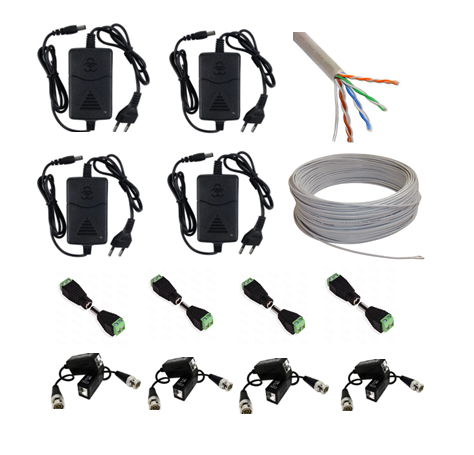 Acest pachet montaj camere supraveghere este recomandat pentru realizarea unui sistem de supraveghere cu 4 camere in locuinte, sedii de firma, depozite, magazine sau alte spatii unde este necesara monitorizarea video. Se foloseste pentru alimentarea camerelor, conectarea semnalului video si realizarea unui traseu simplu si eficient prin cablu UTP.