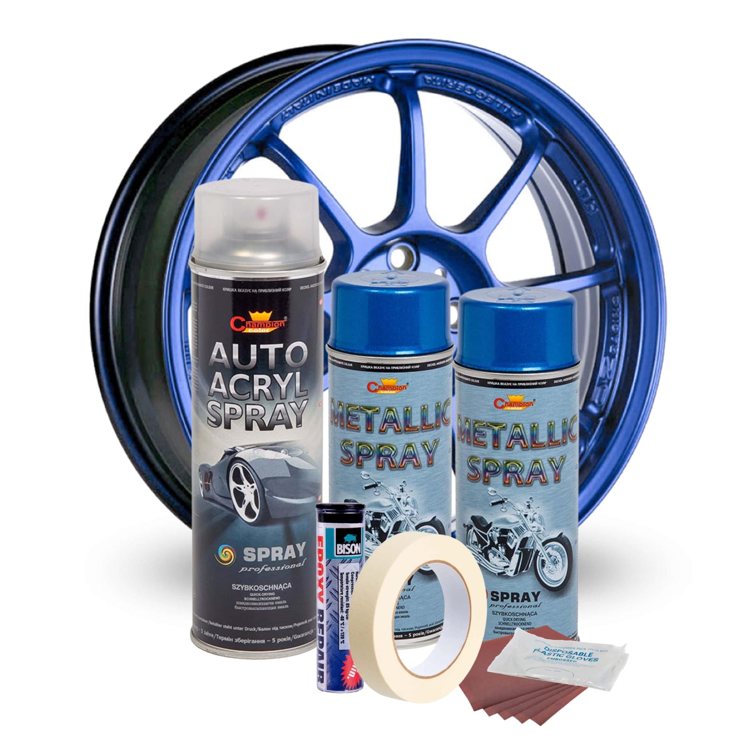 Kit complet reparatie si vopsire jante culoare Albastru Metalizat, V2 FAVLine Selection