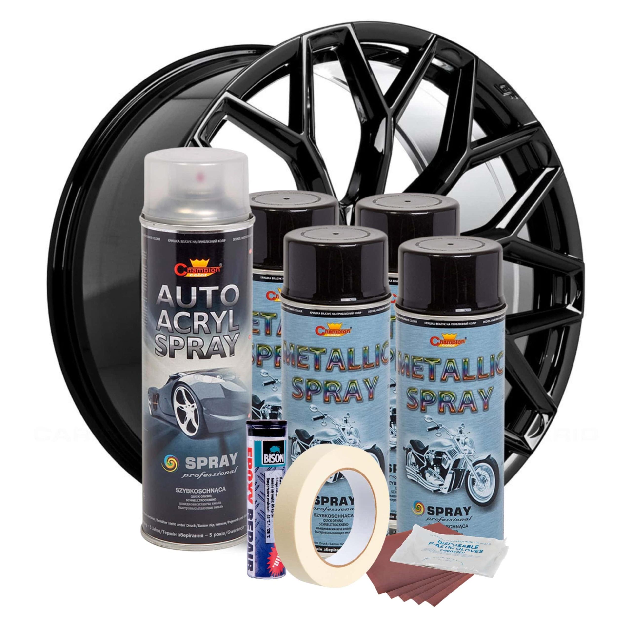 Kit complet reparatie si vopsire jante culoare Negru Metalizat, V4 FAVLine Selection
