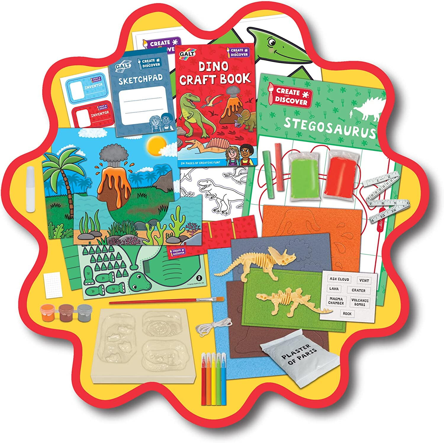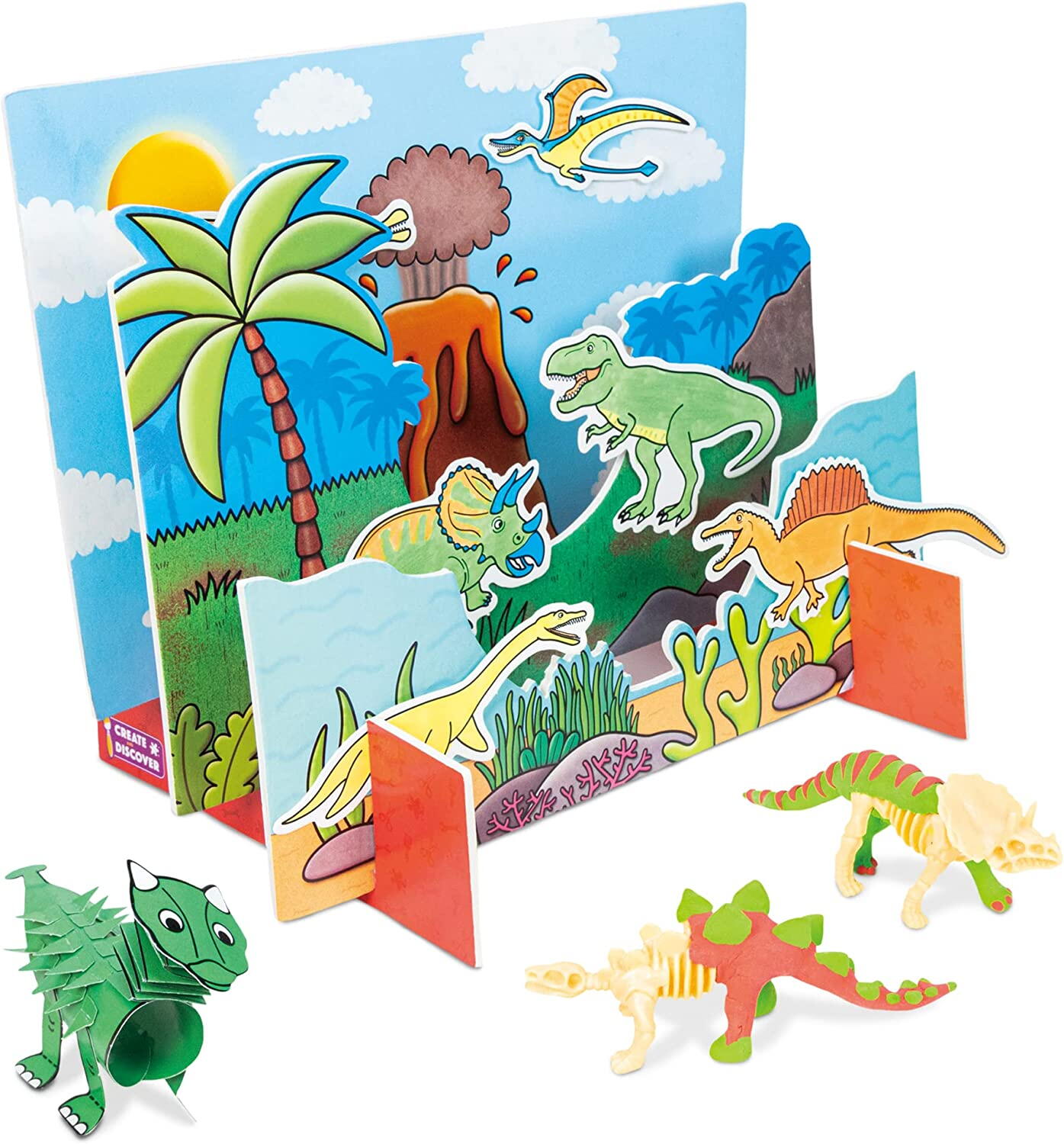 Setul ii invita pe copii sa exploreze fascinanta lume a dinozaurilor prin proiecte distractive: pot realiza o scena 3D, pot crea fosile, pot modela un stegozaur si pot desena o amprenta de dinozaur in marime naturala. Este o alegere excelenta pentru activitati in familie, timp petrecut creativ acasa sau joaca alaturi de prieteni.