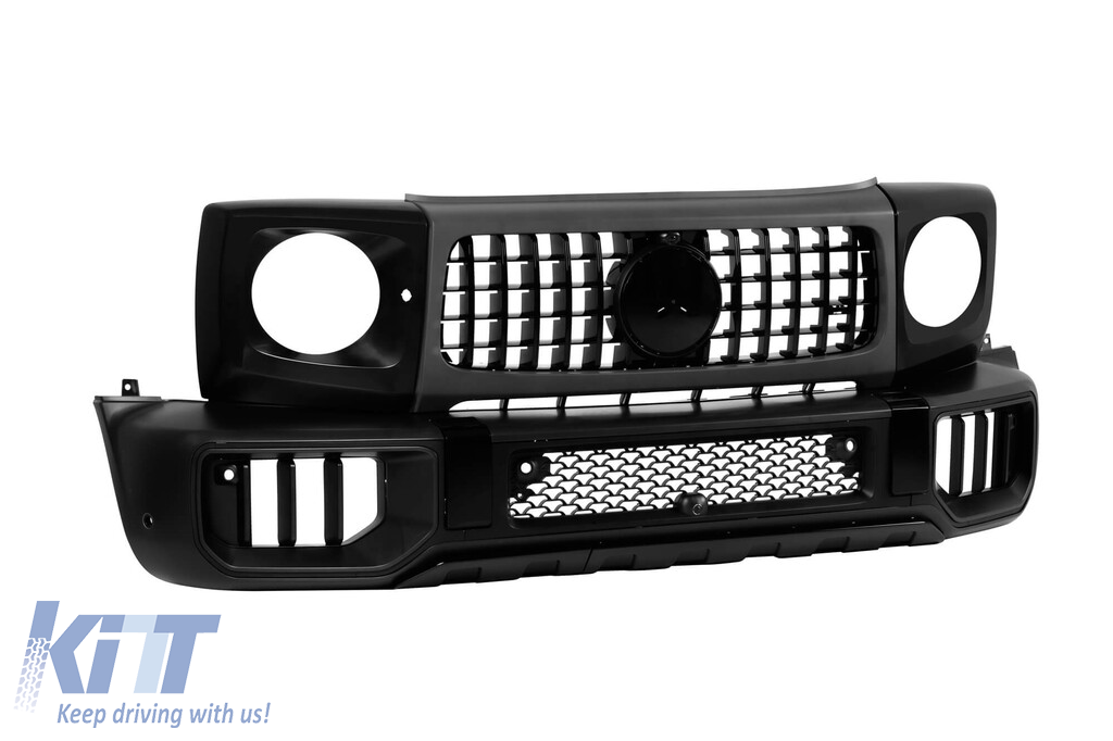 Kit de bara fata din lac negru tip W465 potrivit pentru Mercedes G-Class W464 dupa 2018 cu PDC, grila, inele pentru faruri, extensii pentru aripi Performance AutoTuning