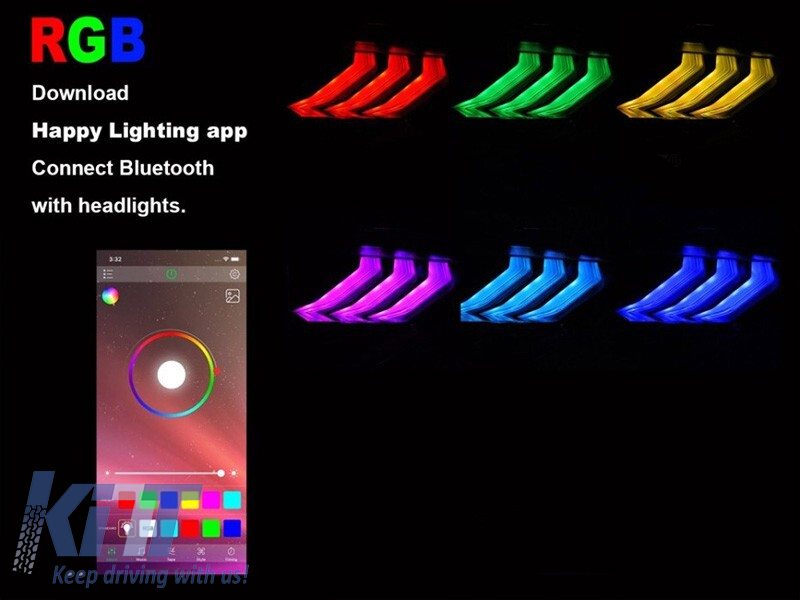 Farurile sunt unul dintre cele mai importante elemente ale vehiculului. O bună vizibilitate depinde în mare măsură de acestea. O lentilă de mica de înaltă calitate se ocupă de grafica perfectă a luminii emise, îmbunătățind și direcționând dispersia luminii emise. Luminile de zi RGB sunt controlate prin aplicația "Happy Lighting app", prin care dispozitivul dumneavoastră mobil se conectează la faruri (prin conexiune Bluetooth). Designul lor inovator reîmprospătează aspectul vehiculului, făcându-l mai futurist și atractiv. Datorită acestor faruri, veți crește vizibilitatea suprafeței drumului cu până la 200%. Informații tehnice: • Greutate: 2.00 • Producător: AUTOPRO • EAN: 1000014754 • Tip far: Cu lumini DRL • Tip bază: negru • Aprobat: E-mark • Luminile de poziție: LED • Blagers: LED • Himp beam: LED • Far de fază lungă: LED • Reglare: electric (motorul este inclus în pachet) • Măsură: Set