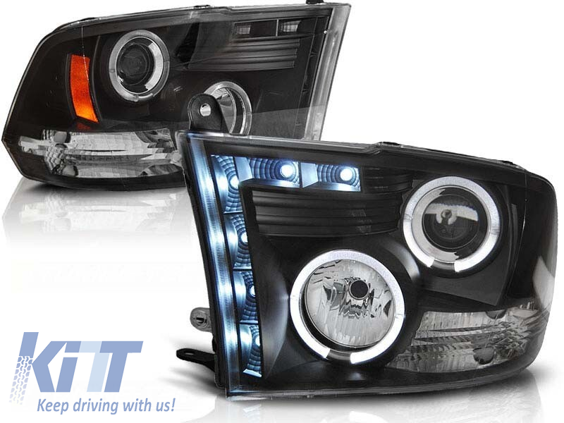 Kit de faruri tuning cu ochi de înger halogen și bandă LED potrivit pentru Dodge RAM 2009-2011, stânga și dreapta Performance AutoTuning