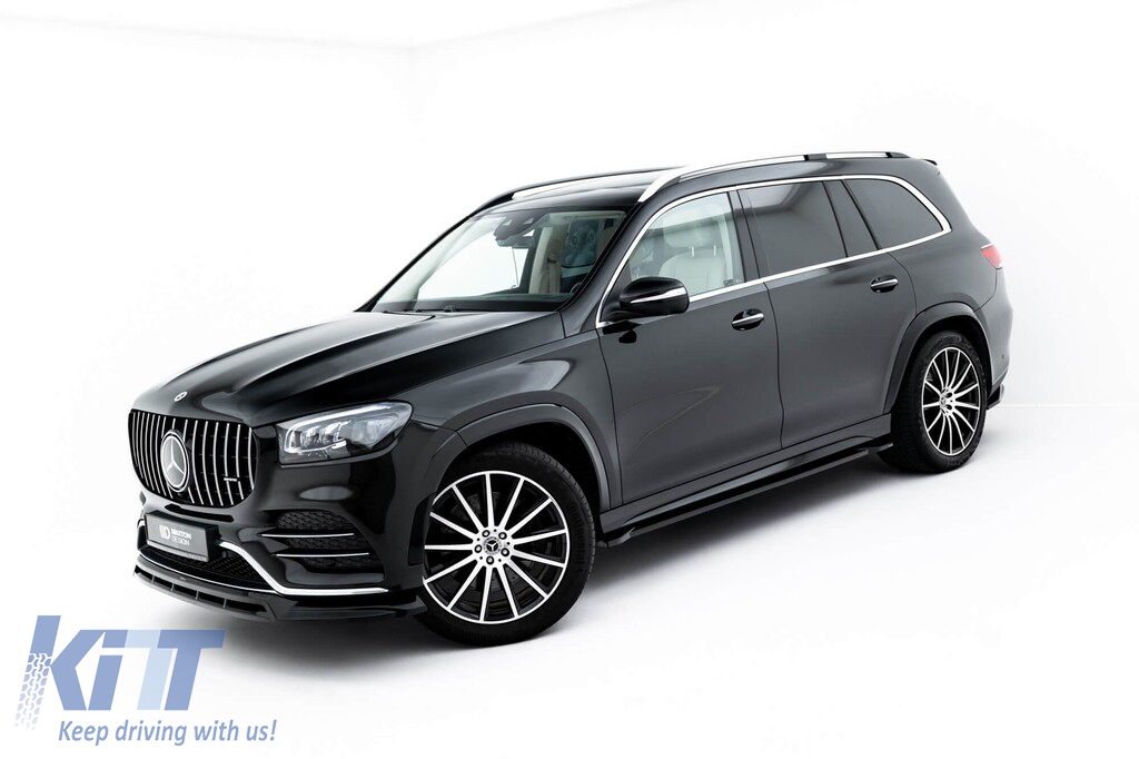Kit de spoilere Maxton Design versiunea 2 tip A Design-Line potrivit pentru praguri laterale, bara de protecție față și spate, și parasolar pentru Mercedes-Benz GLS X167 2019-2023, lac negru Performance AutoTuning