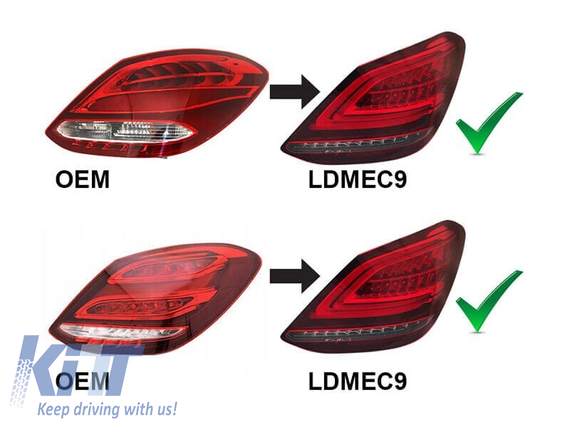 Kit de stopuri LED de tuning potrivit pentru Mercedes C-Class W205 sedan 2014-2018, bază roșie albă, cu semnalizator dinamic, stânga și dreapta Performance AutoTuning
