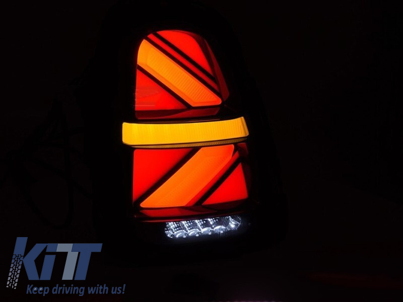 Kit de stopuri LED de tuning potrivit pentru Mini Cooper R56 hatchback 2006-2014, R57 cabrio 2009-2014, R58 coupe, R59 Roadster 2011-2015 cu bază fumurie, cu funcția "Bun venit", stânga și dreapta Performance AutoTuning