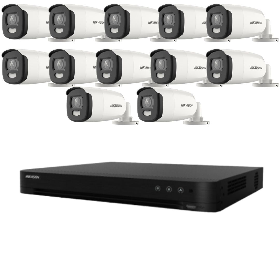 Kit de supraveghere Hikvision 12 camere 5MP ColorVu, Color noaptea 40m, DVR cu 16 canale 8MP SafetyGuard Surveillance