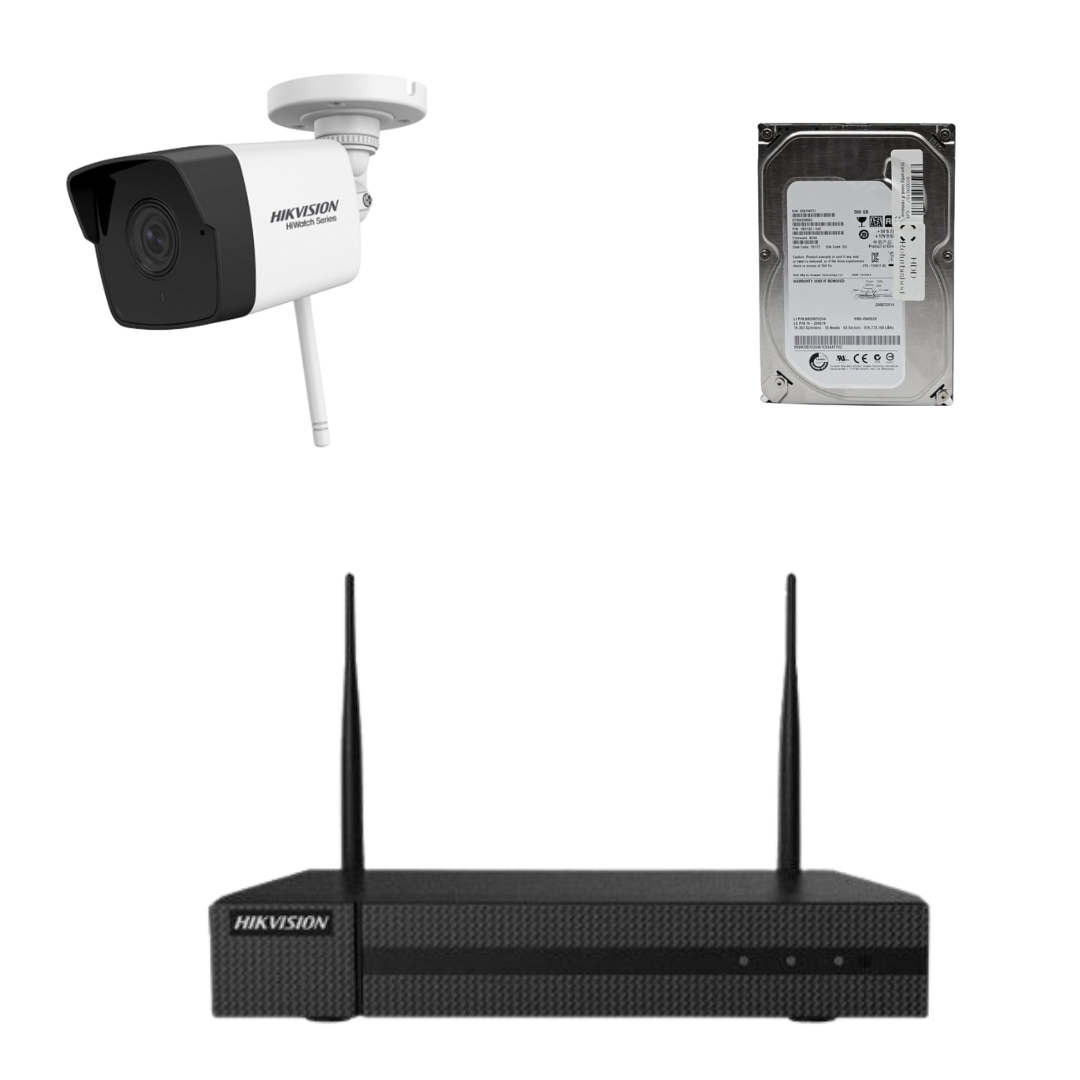 Kit de supraveghere Hikvision HiWatch cu o camera wireless 2MP, 30m IR, lentila 2.8mm, NVR 4 canale HDD inclus SafetyGuard Surveillance