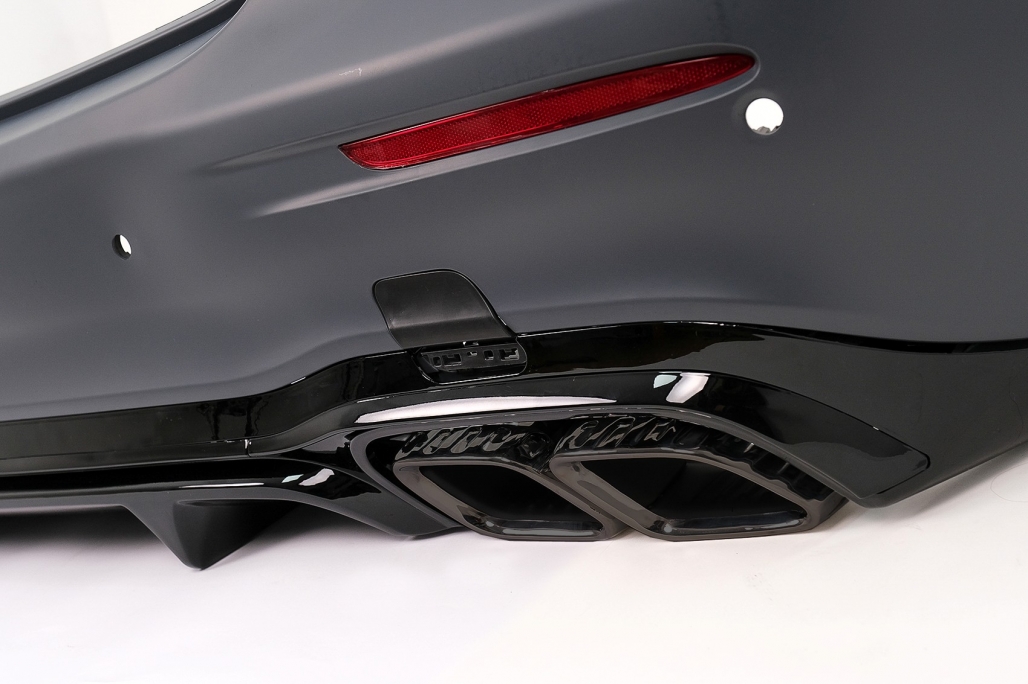 Kit Exterior Complet de Conversie la Facelift 2020 E63s Design Bara fata completa, grila centrala, grile laterale si suporti pentru PDC Grila Centrala Grila este fabricata din plastic ABS de cea mai buna calitate Capacul de conversie al portbagajului realizat din otel Bara spate echipata cu suporti pentru senzorii de parcare (PDC) si difuzor pentru evacuare dubla. Bara spate este fabricat din polipropilena de cea mai buna calitate Ornamente de evacuare realizate din otel inoxidabil 304 de inalta calitate.