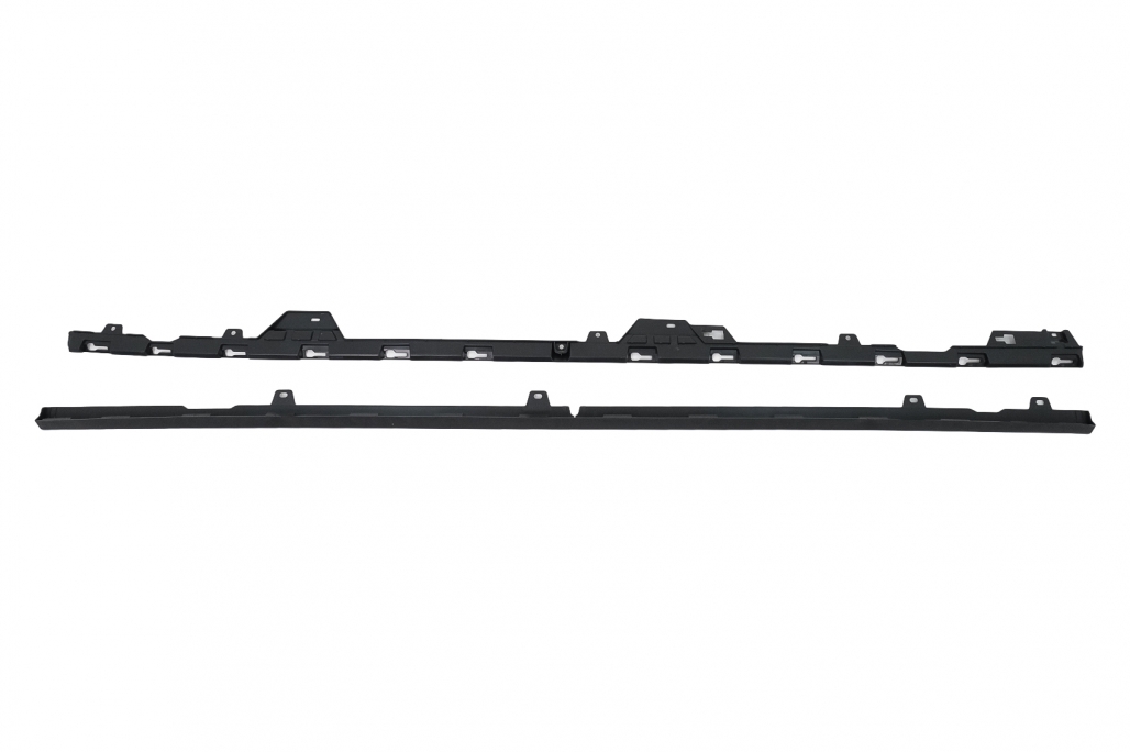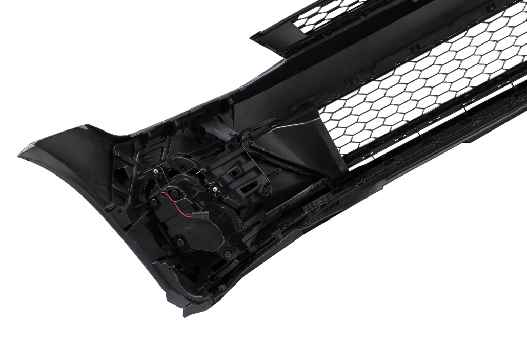 Pachet exterior complet Bara fata echipata cu grila central superioara, grila centrala inferioara, grilele laterale, capacele pentru carligul de remorcare si capacele pentru sistemul de spalare al farurilor. Bara fata fabricata din polipropilena Grila centrala Grila este fabricata din plastic ABS de cea mai buna calitate Difuzor de aer Difuzor de aer pentru evacuare dubla. Difuzor de aer fabricat din polipropilena Praguri laterale fabricate din polypropilena
