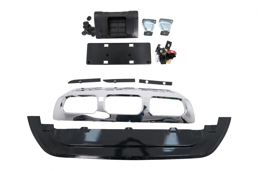Bara Fata echipata cu grila centrala inferioara, grile laterale si ornamente cromate. Bara este fabricata din polipropilena de cea mai buna calitate si nu este pregatita pentru procesul de vopsire. Bara este echipata cu suporti pentru PDC (senzori de parcare). Grila centrala Grila este fabricata din plastic de cea mai buna calitate Capota Material: Metal Bara spate este fabricata din polipropilena de cea mai buna calitate si nu este pregatita pentru procesul de vopsire. Bandou Ornament Protectie bara spate fabricat din ABS *Nota Ornamentele pentru evacuare sunt doar pentru design. Produsul este nevopsit