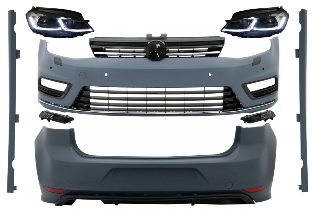 Kit Exterior Complet compatibil cu VW Golf VII 7 (2012-2017) cu Faruri LED Semnal Dinamic R-line Look