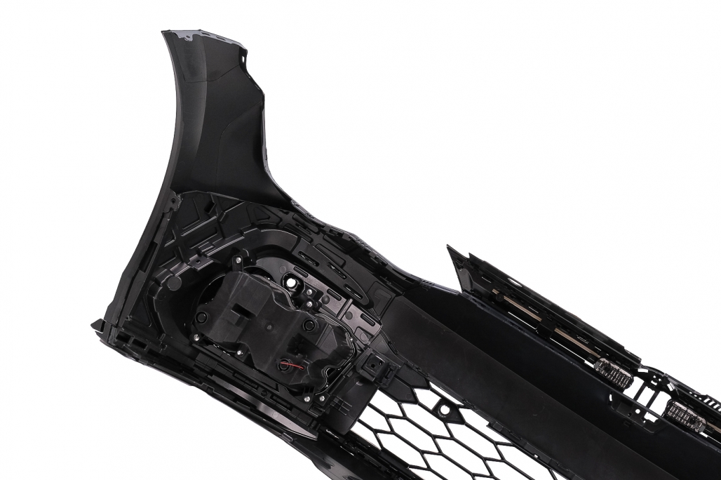 Pachet exterior complet Bara Fata Fabricata din plastic de cea mai buna calitate. Echipata cu grila centrala, grile inferioare, capac pentru carligul de remorcare, gauri si suporti pentru senzorii de parcare (PDC). Bara Spate Fabricata din plastic de cea mai buna calitate. Echipata cu capac pentru carligul de remorcare, reflectorizanti (catadioptrii), difuzor cu ornamente de evacuare. Nu are gauri si suporti pentru senzorii de parcare (PDC) Extensii Prelungiri Praguri Laterale Fabricate din plastic de cea mai buna calitate. Finisaj: Negru Lucios