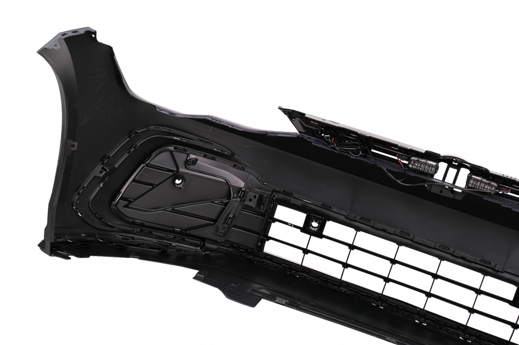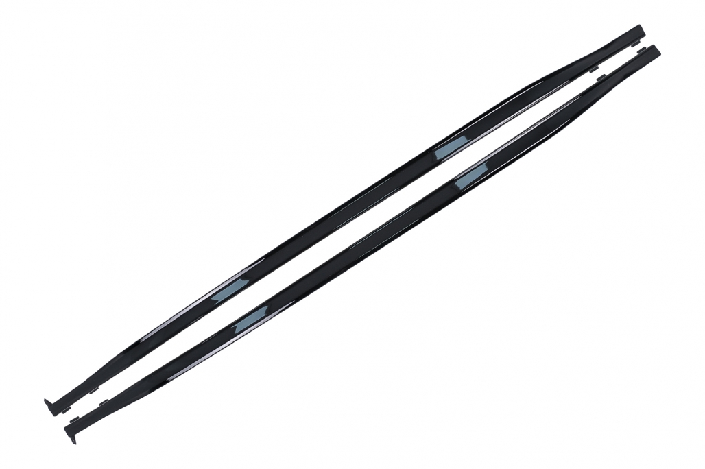 Pachet exterior complet Bara Fata Fabricata din plastic de cea mai buna calitate. Echipata cu grila centrala, grile inferioare, capac pentru carligul de remorcare, gauri si suporti pentru senzorii de parcare (PDC). Bara Spate Fabricata din plastic de cea mai buna calitate. Echipata cu capac pentru carligul de remorcare, reflectorizanti (catadioptrii), difuzor cu ornamente de evacuare. Nu are gauri si suporti pentru senzorii de parcare (PDC) Extensii Prelungiri Praguri Laterale Fabricate din plastic de cea mai buna calitate. Finisaj: Negru Lucios