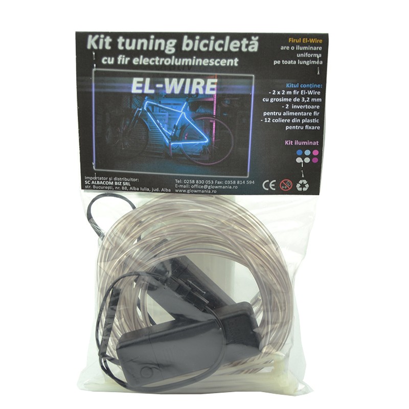 - Continut: 2 x fir EL Wire (2 m), 2 x invertoare alimentare, clipsuri de prindere
