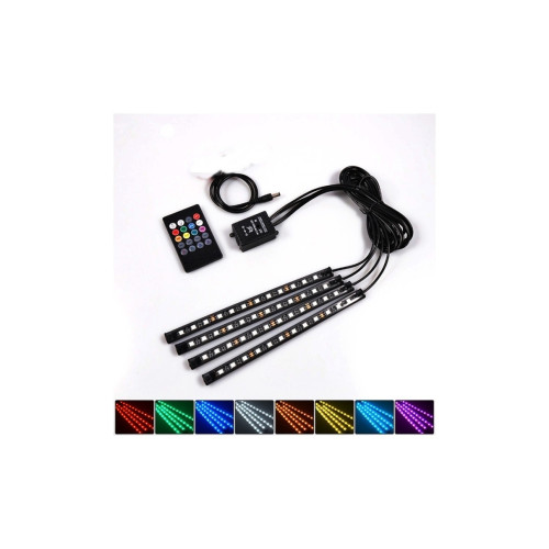 Kit interior LED 12 SMD RGB cu telecomanda si aplicatie BTT 22cm Cod: JS01-5V
