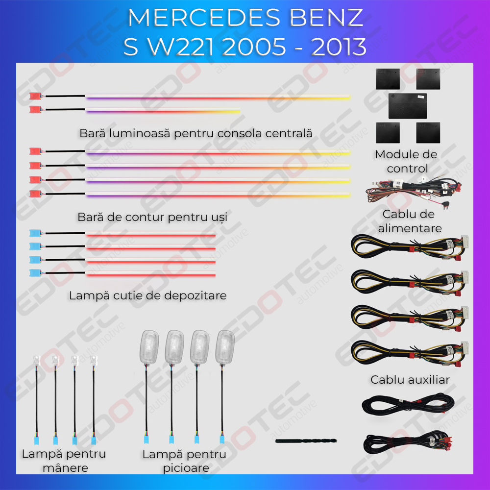Kit lumini ambientale Mercedes W221 2007-2013, set complet RGB dedicat
