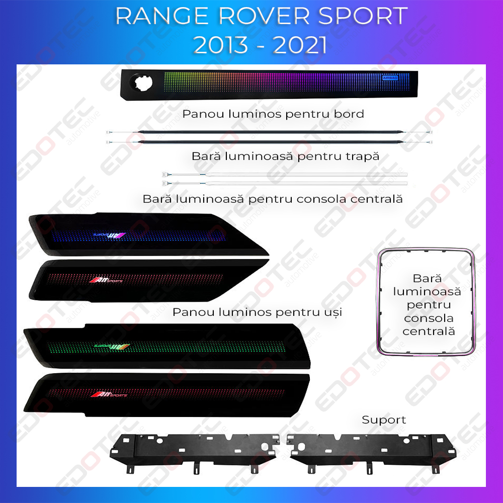 Transformă interiorul mașinii tale cu acest kit lumini ambientale Range Rover Sport 2013-2022, creat pentru un aspect premium și o experiență de condus mai plăcută. Sistemul oferă control din telefon prin Bluetooth și, în funcție de configurarea mașinii, poate permite și control din sistemul original.