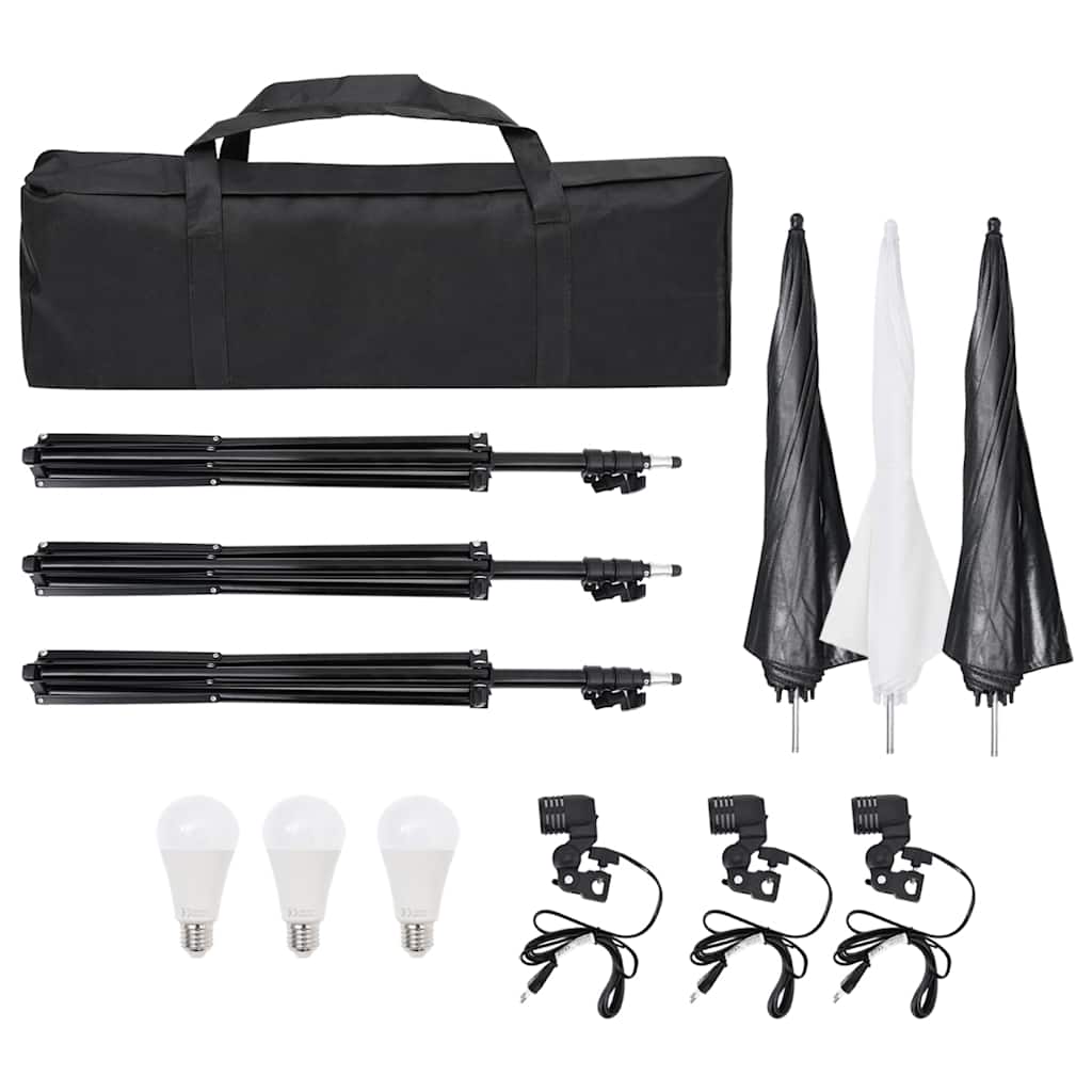 Acest set de lumini de studio este format din 3 lămpi de zi, 3 suporturi de lămpi, 3 trepiede și 3 umbrele (1 x alb, 2 x argintiu). Este potrivit pentru fotografii și videoclipuri și ușor de luat cu dvs.