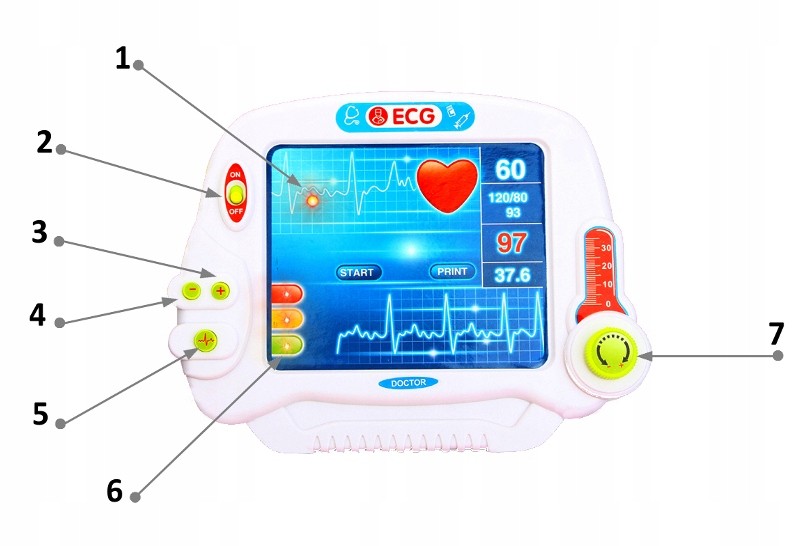 Acest kit medical nu este doar o jucarie, ci si un instrument de invatare prin joaca. Functiile interactive, precum sunetele si luminile emise de dispozitivul EKG, adauga realism si sporesc interesul copiilor pentru domeniul medical. Jocul de rol cu setul de doctor stimuleaza imaginatia, dezvolta abilitatile motorii fine si incurajeaza empatia, pe masura ce copiii isi trateaza „pacientii”. Panoul interactiv EKG are urmatoarele functii: 1.LED rosu, 2. Pornit/oprit, 3. Sunet de alarma, 4. Sunetul batailor inimii, 5.Semnalizarea sonora a starii pacientului, 6. Lumina care indica starea pacientului, 7. Buton cu sunet de viteza.