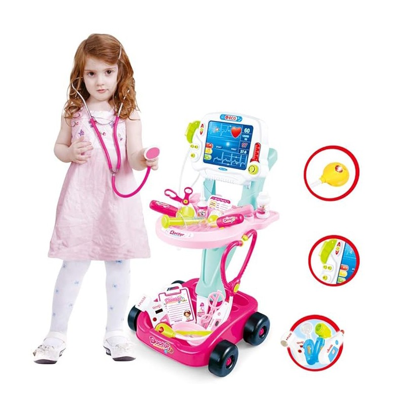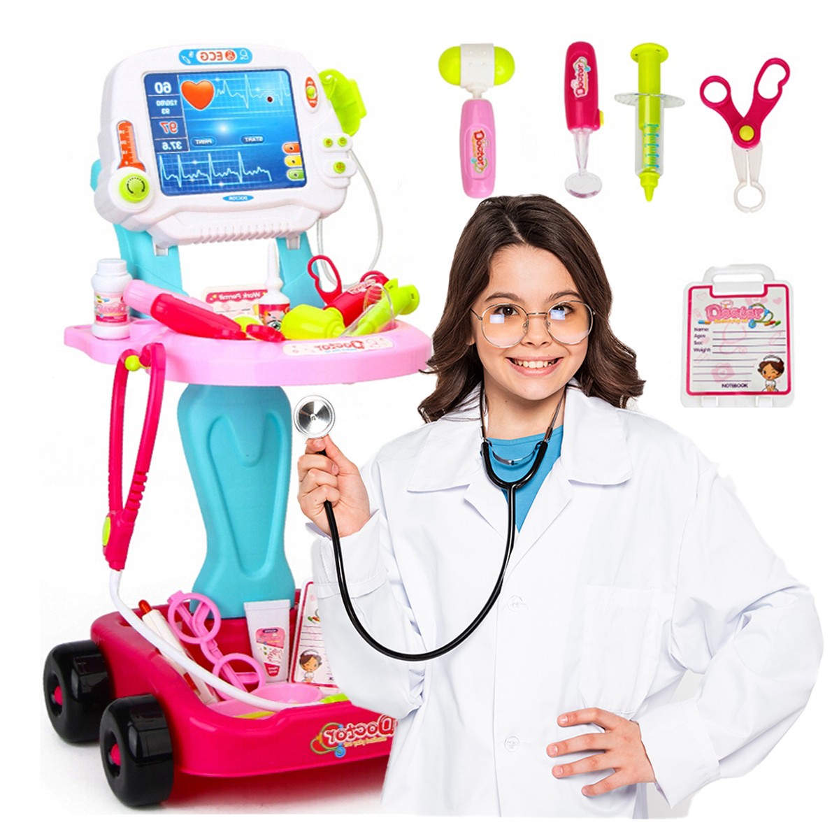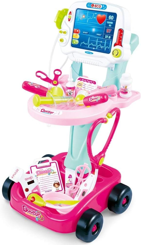 Kitul medical pentru copii, cu 18 piese si carucior cu EKG, ofera o experienta de joaca captivanta si educativa, transformand fiecare zi intr-o aventura medicala!