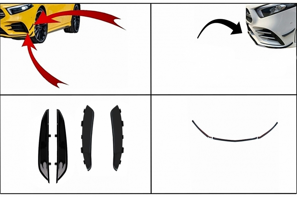Kit Ornamente bara fata flapsuri si Lip Bara Fata Mercedes A-Class W177 V177 (04.2018-22) A35 Design Negru Performance AutoTuning