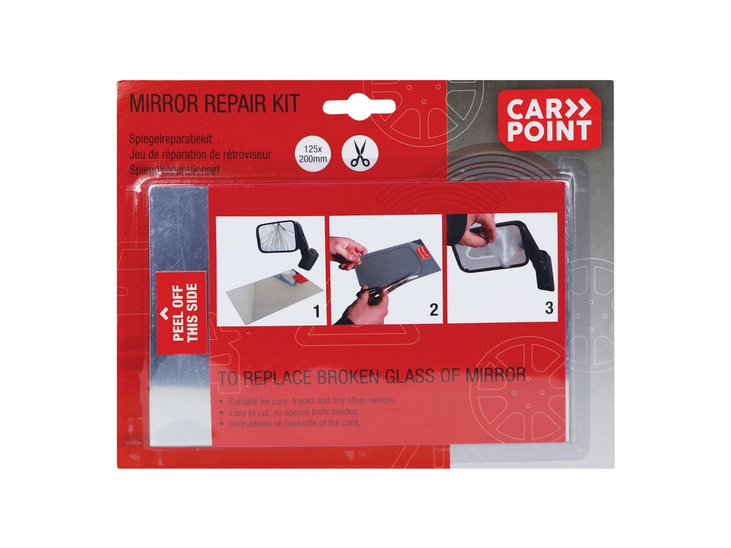 Kitul de reparație pentru oglindă retrovizoare este o soluție practică și rapidă pentru înlocuirea suprafeței deteriorate a oglinzii. Placa se poate tăia ușor la dimensiunea dorită și se aplică peste oglinda veche, fiind ideală pentru reparații simple, fără costuri mari.
