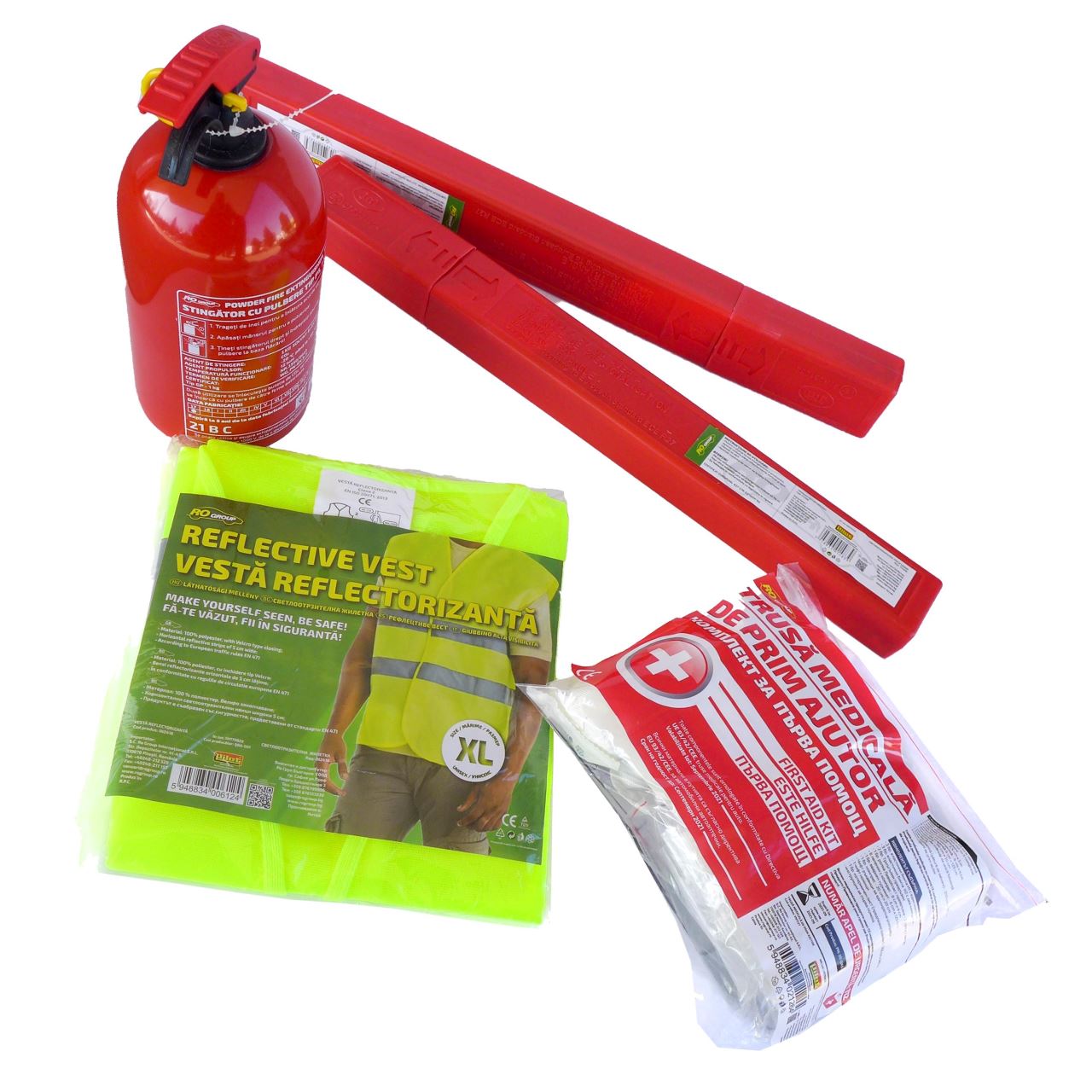 Daca ai nevoie de un set siguranta auto practic, complet si usor de depozitat, acest model RoGroup este o solutie eficienta pentru echiparea masinii tale.