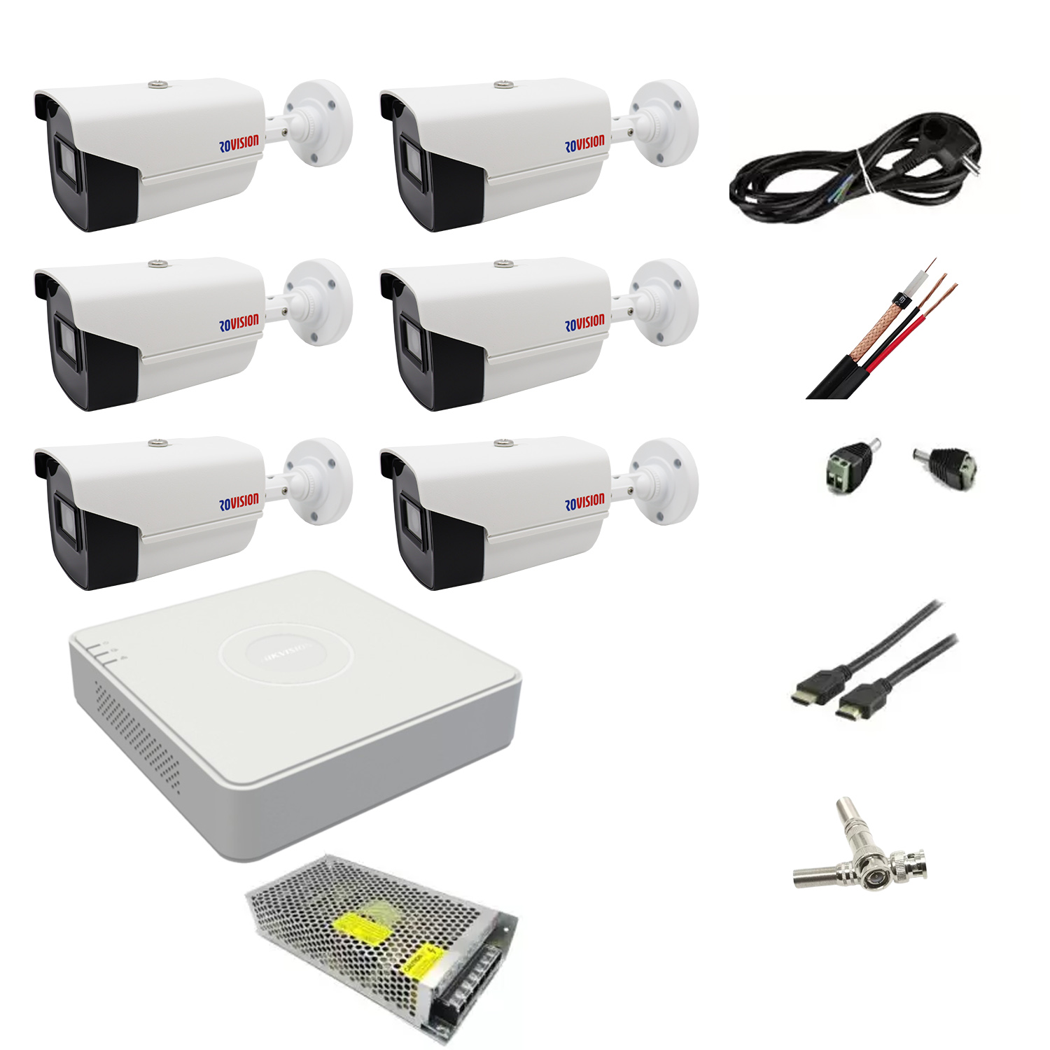 Alege un kit supraveghere exterior complet, potrivit pentru protejarea locuintei, curtii, spatiilor comerciale sau a halelor. Sistemul include 6 camere de supraveghere 2MP pentru exterior, cu iluminare infrarosu de pana la 40 metri, plus DVR Hikvision cu 8 canale pentru inregistrare stabila si administrare usoara. Este o solutie practica pentru cei care vor un sistem gata de montaj, cu accesorii incluse.