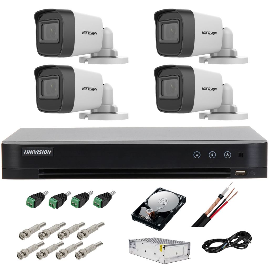 Kit supraveghere Hikvision 5MP cu 4 camere Bullet IR 25 m si HDD 1TB