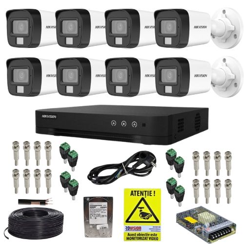 Acest kit supraveghere Hikvision 8 camere 5MP este o solutie completa pentru protejarea locuintei, curtii, biroului sau spatiului comercial. Pachetul include 8 camere cu microfon integrat, tehnologie Dual Light pentru imagini clare zi si noapte, un DVR Hikvision 8 canale cu AcuSense, accesorii de montaj si HDD de 1TB pentru stocarea inregistrarilor. Lentila de 2.8 mm ofera un unghi larg de supraveghere, ideal pentru monitorizarea eficienta a zonelor importante.