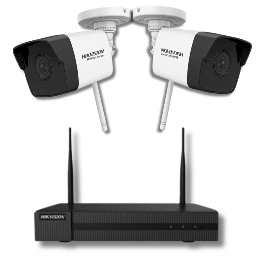 Kit supraveghere Hikvision seria HiWatch 2 camere IP Wi-Fi 2 Megapixeli, IR 30m Microfon SD card, NVR 4 canale 6 Megapixeli SafetyGuard Surveillance