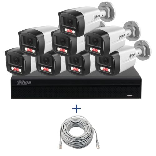 Kitul de supraveghere IP Dahua este o solutie completa pentru monitorizarea eficienta a locuintei, curtii, biroului sau spatiilor comerciale. Pachetul include 8 camere IP de 4MP cu microfon incorporat, alimentare PoE, vedere pe timp de noapte cu IR 40 m si lumina alba 30 m, plus un NVR Dahua WizSense cu 8 canale PoE pentru administrare simpla si inregistrare clara.