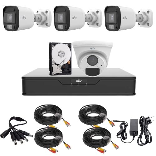 Protejeaza eficient locuinta sau afacerea cu acest kit supraveghere Uniview complet, pregatit pentru monitorizare clara zi si noapte. Pachetul include 3 camere bullet 5MP ColorHunter cu vedere color pe timp de noapte, 1 camera dome 2MP cu microfon integrat, XVR 4 canale, HDD de 500GB si accesorii de montaj. Este o solutie practica pentru cei care vor imagini detaliate, sunet ambiental si vizualizare de pe telefon.