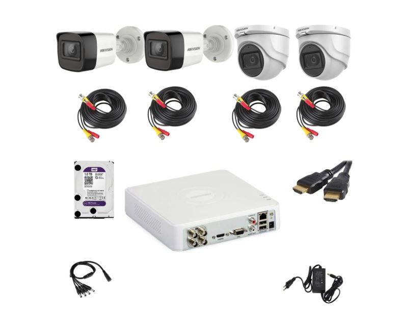 Alege un kit supraveghere video Hikvision 5MP complet, potrivit pentru locuinte, birouri, magazine sau spatii comerciale. Pachetul include 2 camere interior, 2 camere exterior, DVR 4 canale, hard disk dedicat pentru supraveghere si toate accesoriile necesare pentru instalare. Este o solutie practica si eficienta pentru monitorizare permanenta, cu imagini clare si stocare sigura.