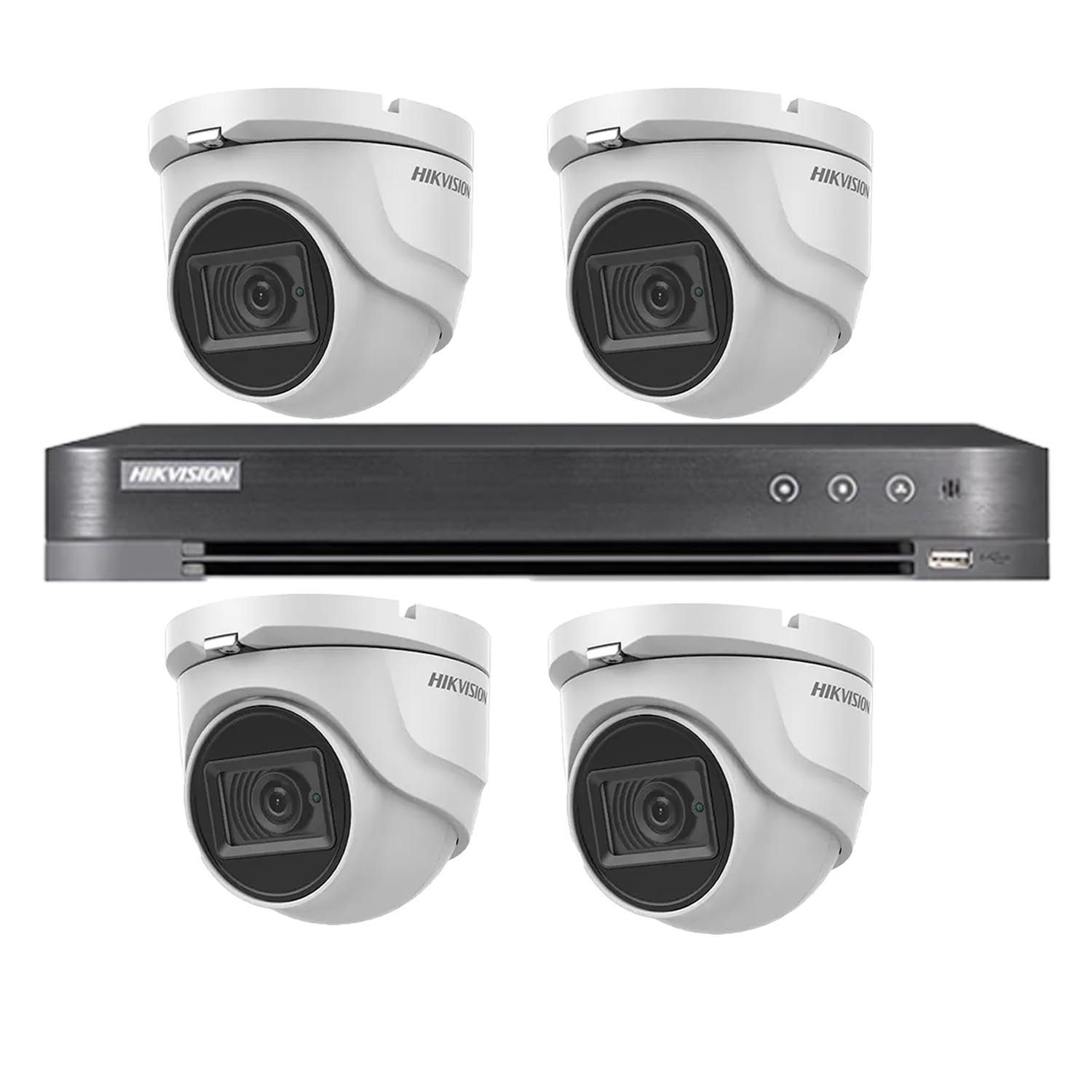 Kit supraveghere video Hikvision cu 4 camere dome 8MP si DVR 4K