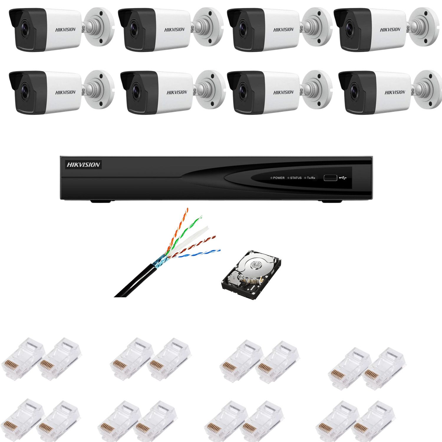 Alege un kit supraveghere video Hikvision complet, pregatit pentru monitorizarea eficienta a locuintei, curtii, biroului sau spatiilor comerciale. Sistemul include 8 camere IP 4MP, NVR 8 canale, HDD de 4TB si accesorii pentru instalare, oferind imagini clare, vizibilitate pe timp de noapte si administrare usoara prin aplicatia Hik-Connect.