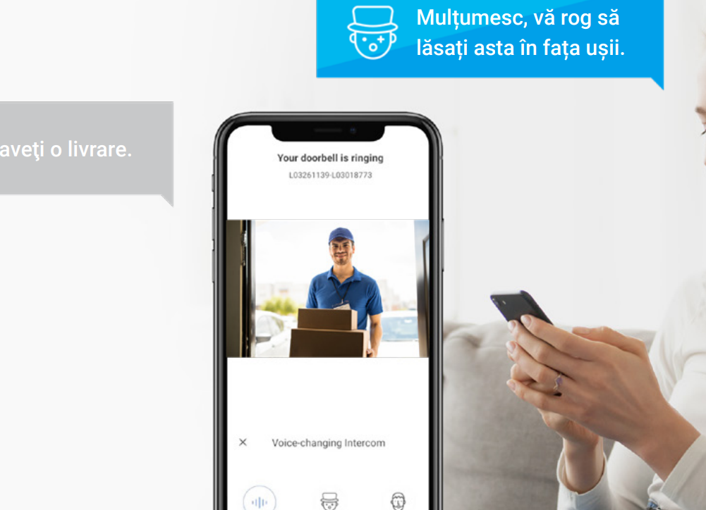 Chiar si cand sunteti departe de casa, HP5 va garanteaza ca nu veti rata niciun vizitator. Puteti ramane mereu conectat prin telefon, avand optiunea de a deschide usa oaspetilor de la distanta. Pentru un plus de siguranta, atunci cand raspundeti persoanelor necunoscute, puteti activa functia de modificare a vocii, pastrandu-va anonimatul si asigurandu-va protectia.