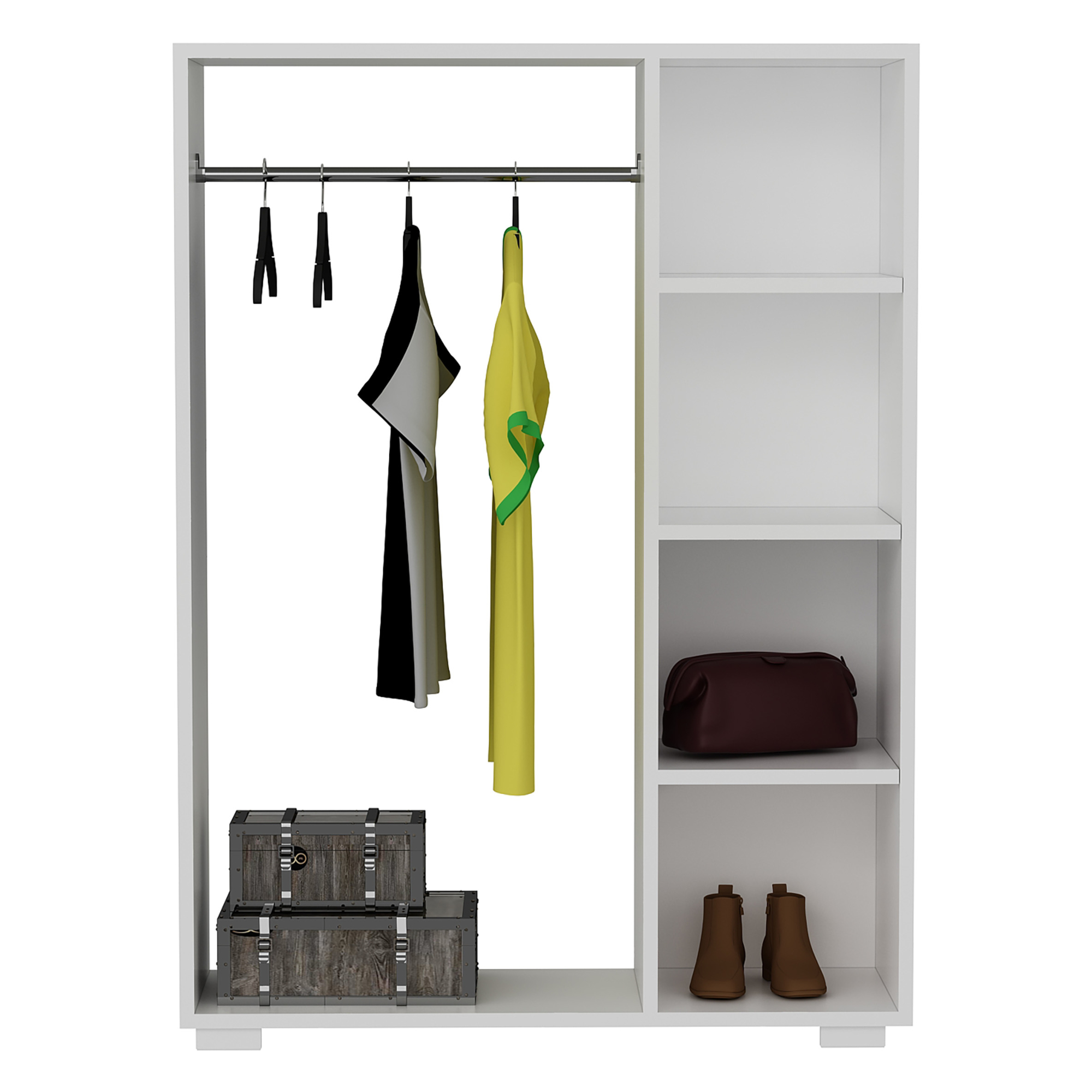 Das praktische und stabile Kleiderregal lässt sich schnell und einfach aufbauen. Es verfügt über eine Garderobenstange und zusätzliche Ablagemöglichkeiten, für bspw. Schuhe oder andere Gegenstände.