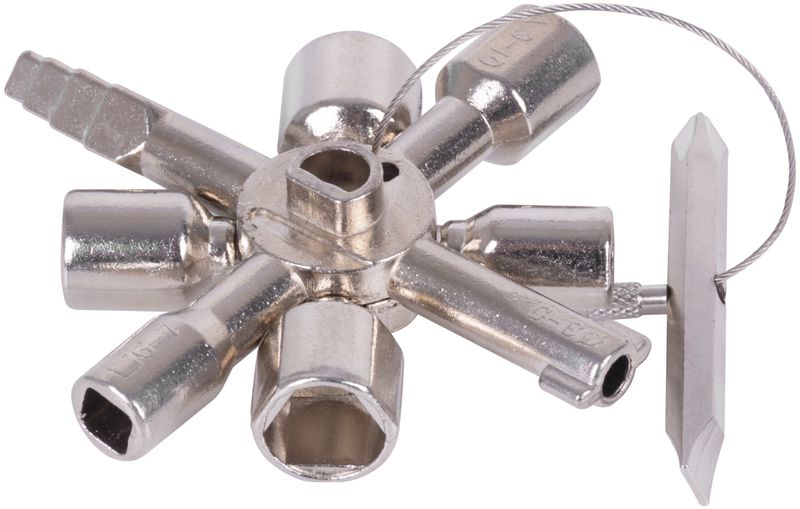 Tento všestranný kľúč je ideálny pre ovládanie všetkých bežných uzamykacích systémov v technickom vybavení budov, ako sú kúrenie, sanita, klimatizácia, elektroinštalácie, rozvody plynu, vody a vypínacie systémy.