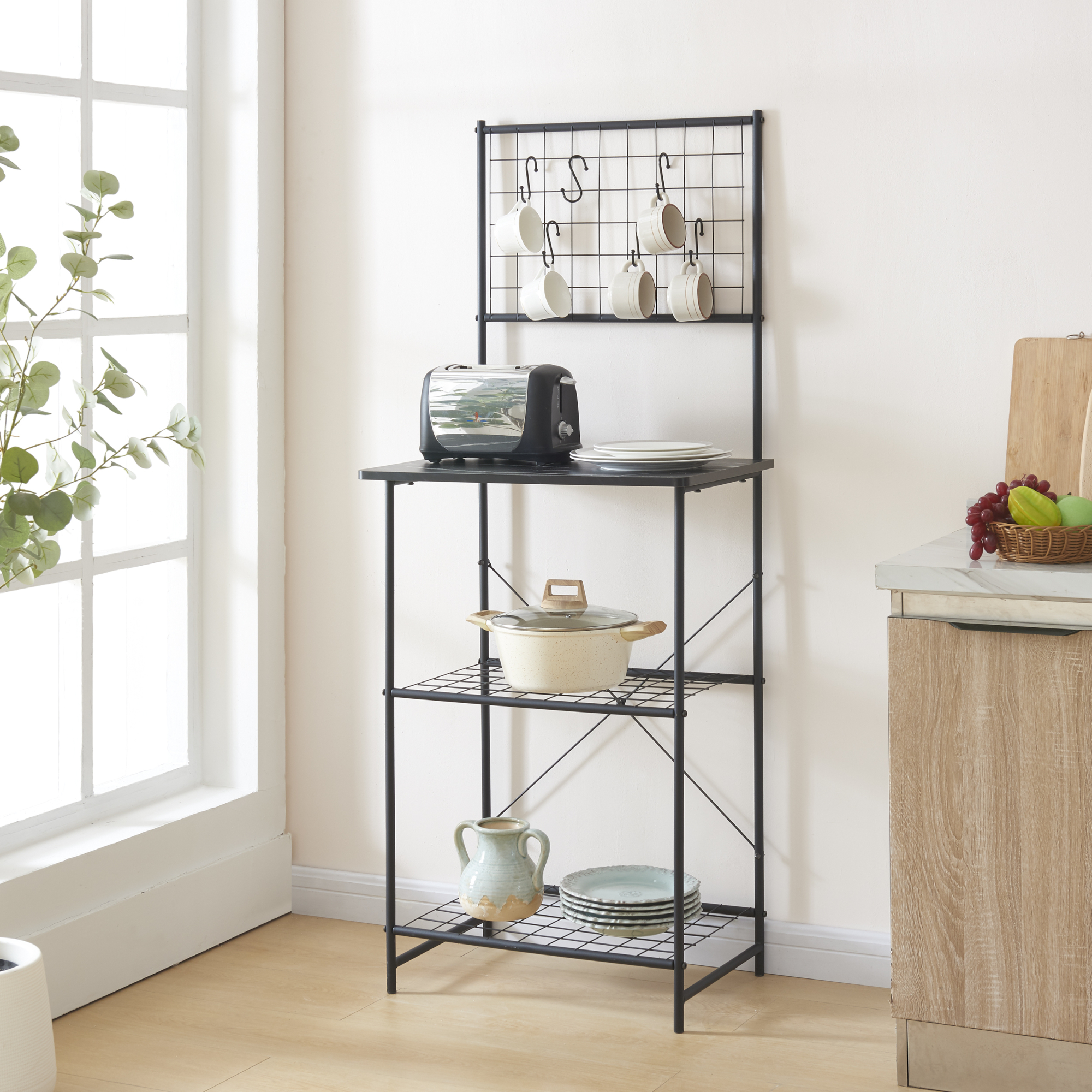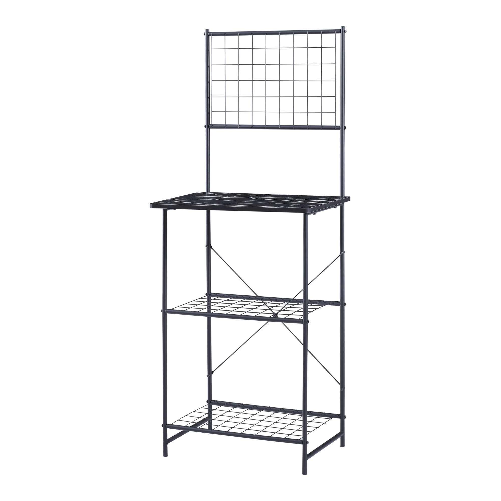 Dieses stilvolle und praktische Standregal verfügt insgesamt über eine Arbeitsplatte und zwei Gitterablagen. Es eignet sich bspw. ideal für Ihre Küche zum Verstauen von Küchengeräten, wie Mikrowelle, Toaster oder Wasserkocher.