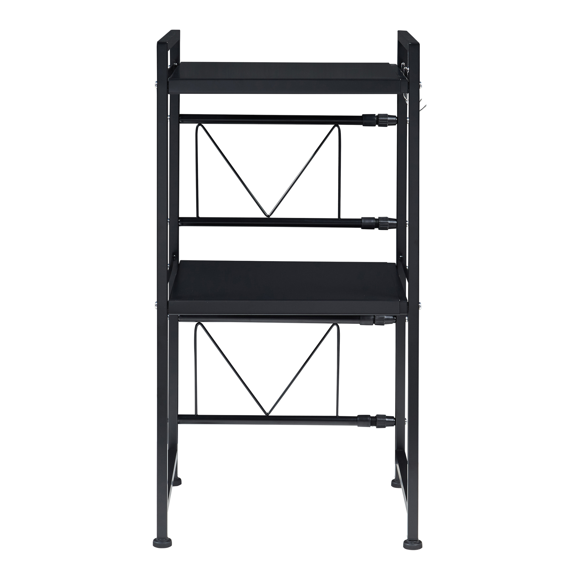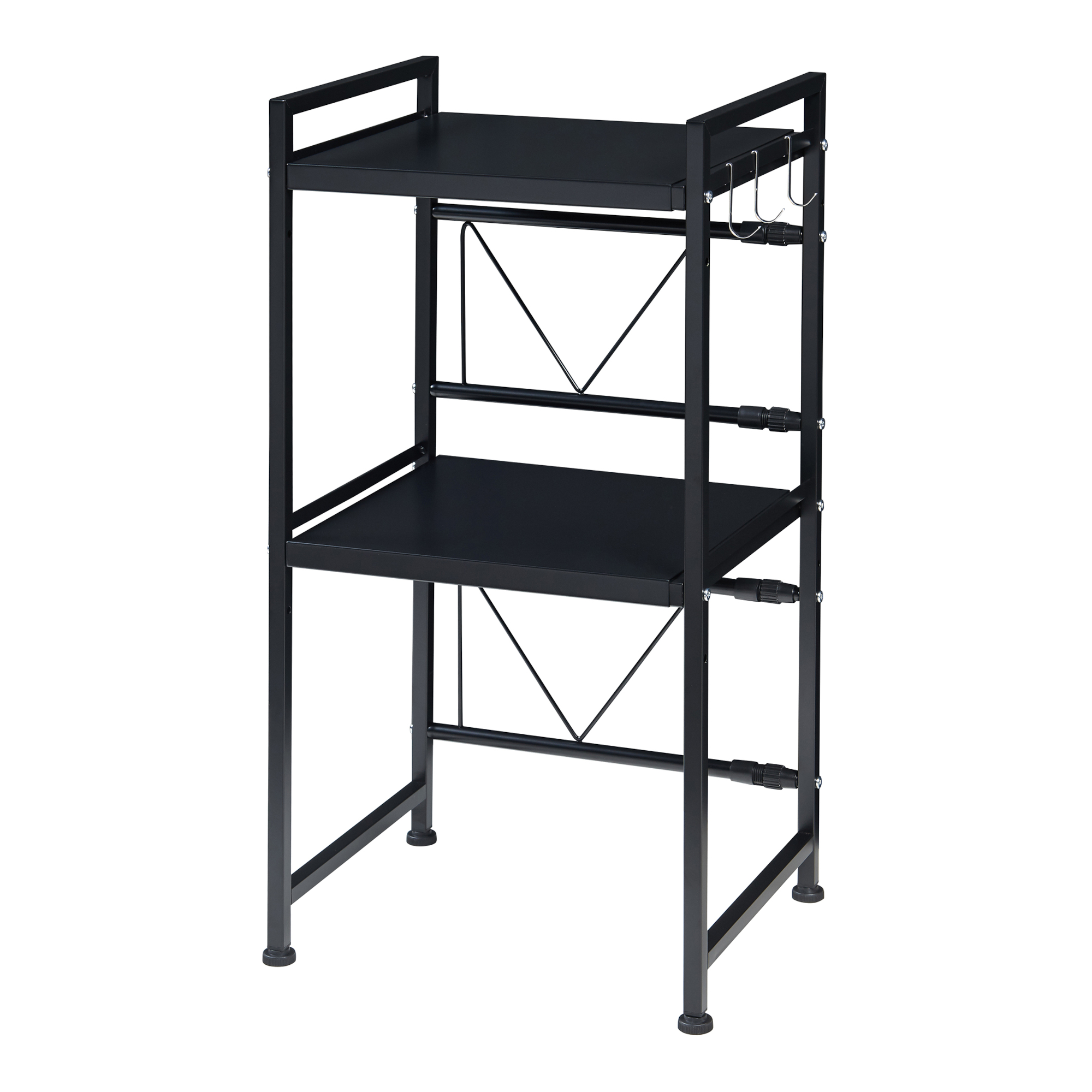 Das Regal verfügt über zwei Ablagen, die je nach Bedarf in zwei verschiedenen Höhen installiert werden können. Auf den Ablagen lassen sich Küchengeräte, Gewürzflaschen, Töpfe, Teller und andere häufig genutzte Utensilien übersichtlich aufbewahren.