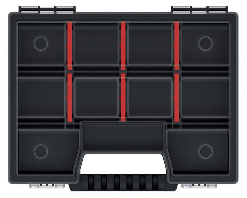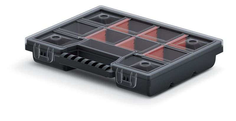 - organizér je vybavený dvoma zámkami, ergonomickým držadlom a priehladným vekom, takže jeho obsah je vždy dobre viditelný