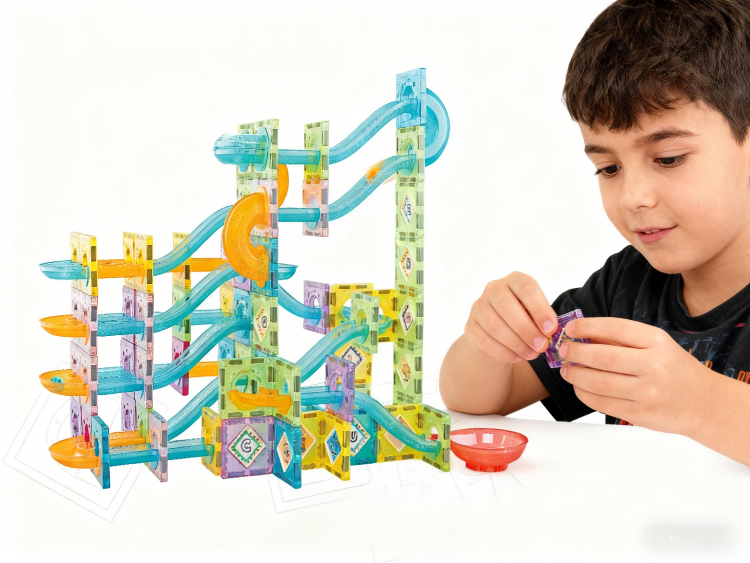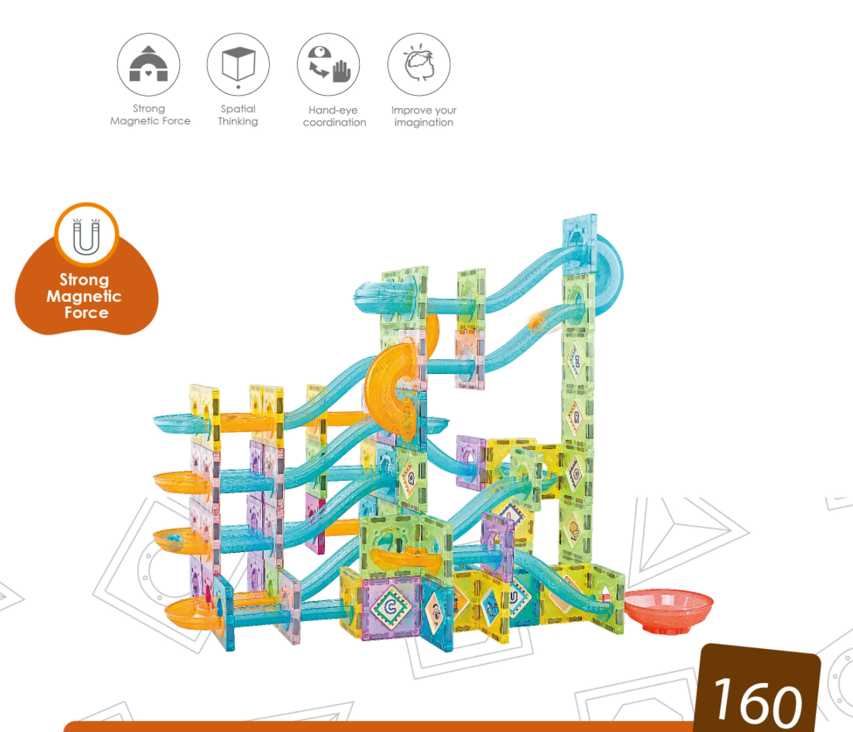 Utilizare: copiii pot combina piesele magnetice si nemagnetice pentru a construi labirinturi, circuite si modele 3D, apoi pot folosi bilele incluse pentru a testa traseele create. Este un mod distractiv de a exersa imaginatia si perseverenta.
