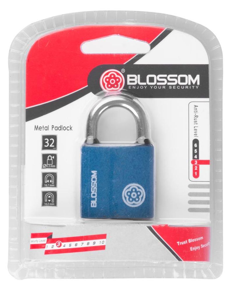 Lacăt cu cheie Blossom Unique BC29 32 mm, cu arc din oțel întărit