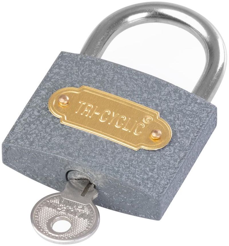 Utilizare: Introduceți toarta lacătului prin urechea de închidere (zăvor/ochi metalic), închideți și verificați blocarea. Păstrați o cheie de rezervă într-un loc sigur.