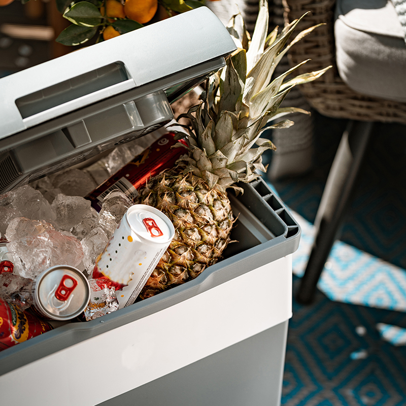 Setul include cabluri pentru conectarea frigiderului la priza de brichetă auto 12V DC și la priza AC 220-240V